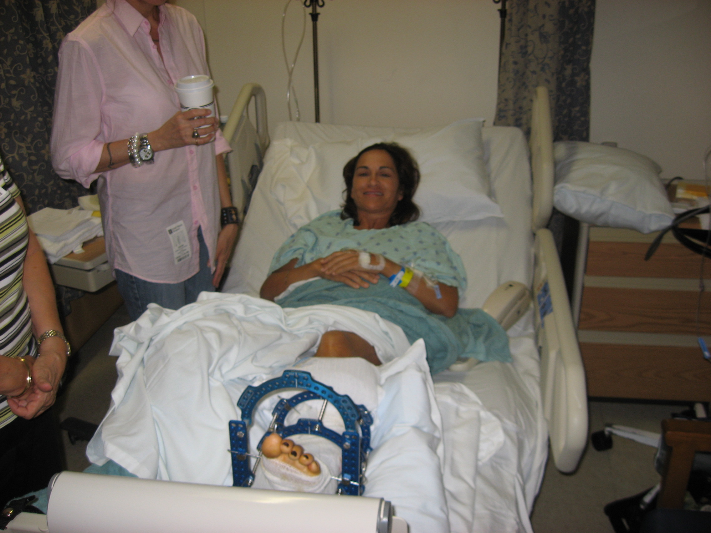 I am going to the hospital tomorrow for reconstructive surgery on my ankle. I have traumatic arthritis and diminished cartilage due to a car accident 5 1/2 years ago. The procedure is going to be two fold, first all the metal, about a dozen pins and two plates, are going to be removed and am going to have a “halo” attached, also called Ilizarov and drilled into the bone in 12 places from my foot to my shin. It will be giving space to my joint and basically will look like I am a human shiskobob. I will have this attached 24/7 to my ankle for 6 weeks. (more…)